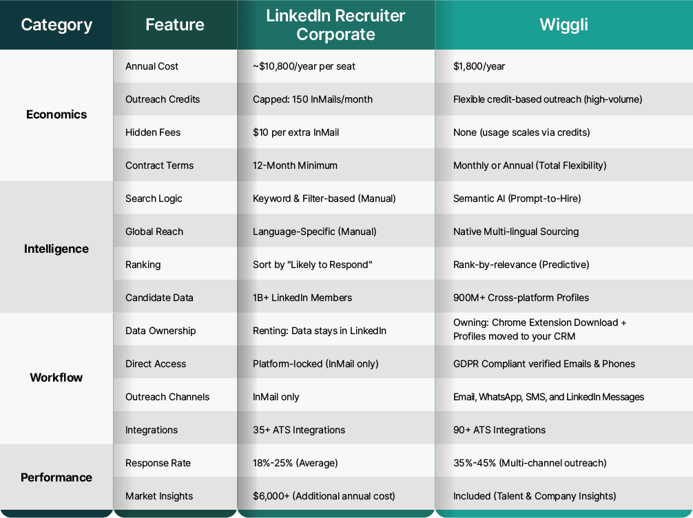 Wiggli vs LinkedIn Recruiter Corporate